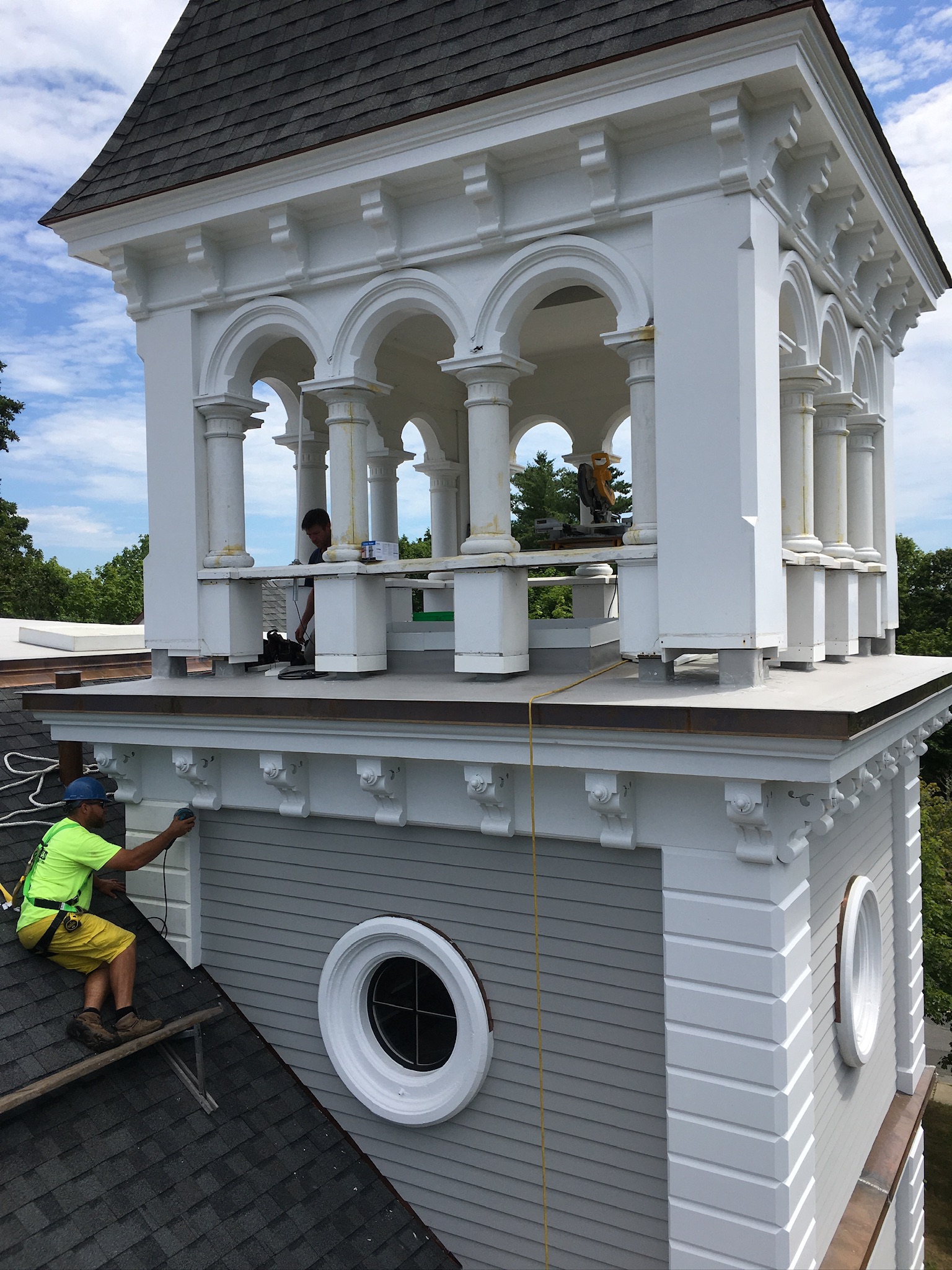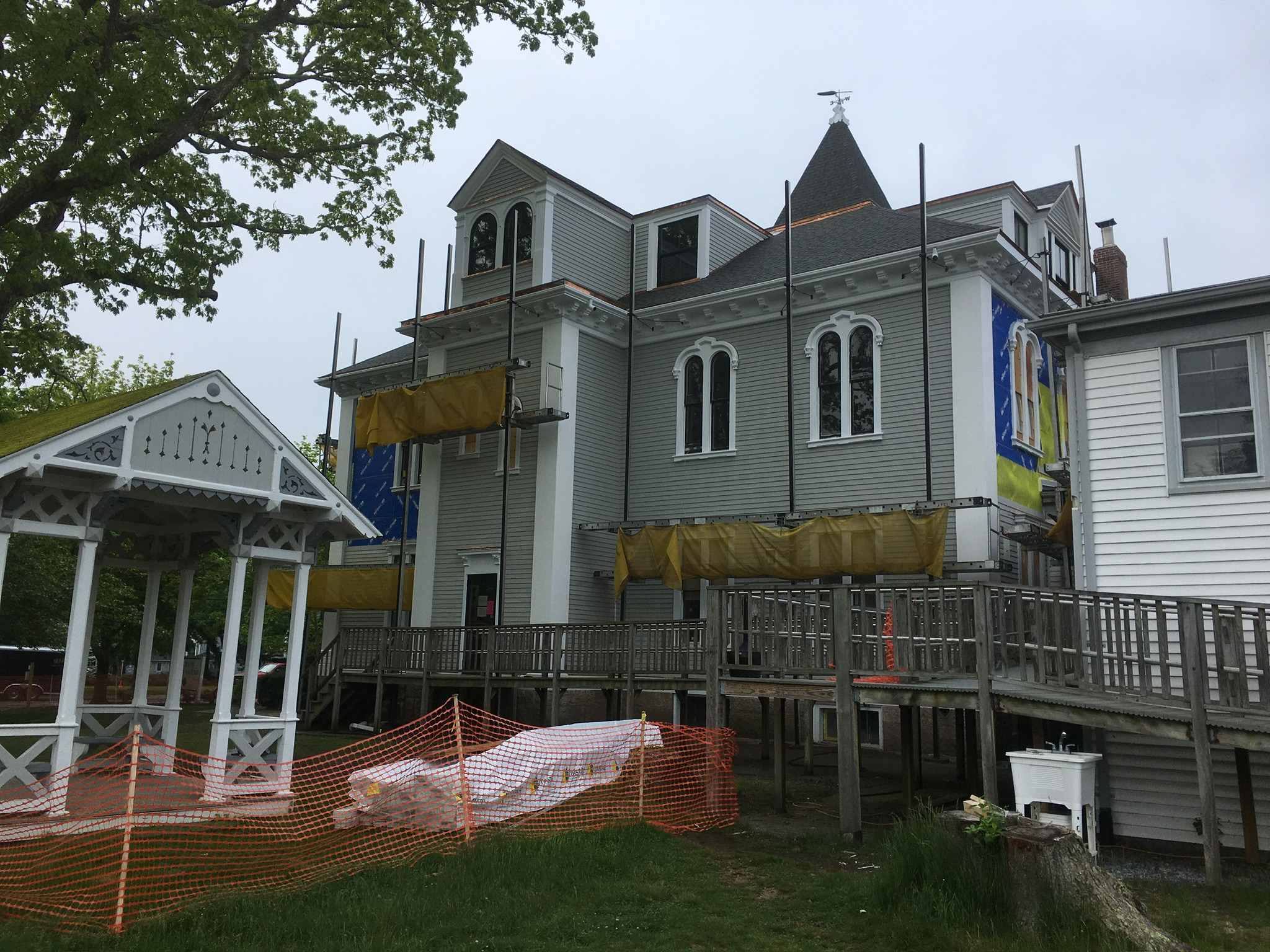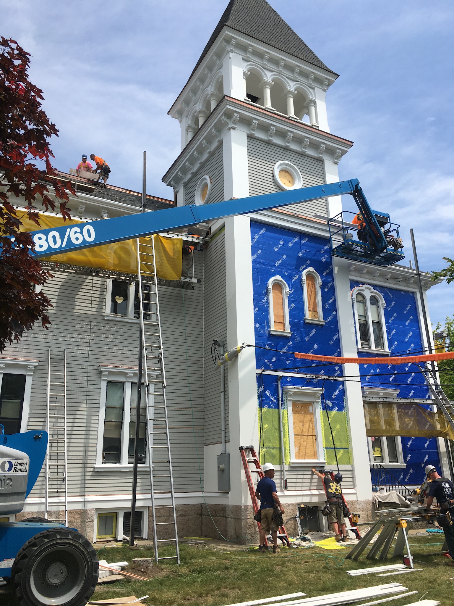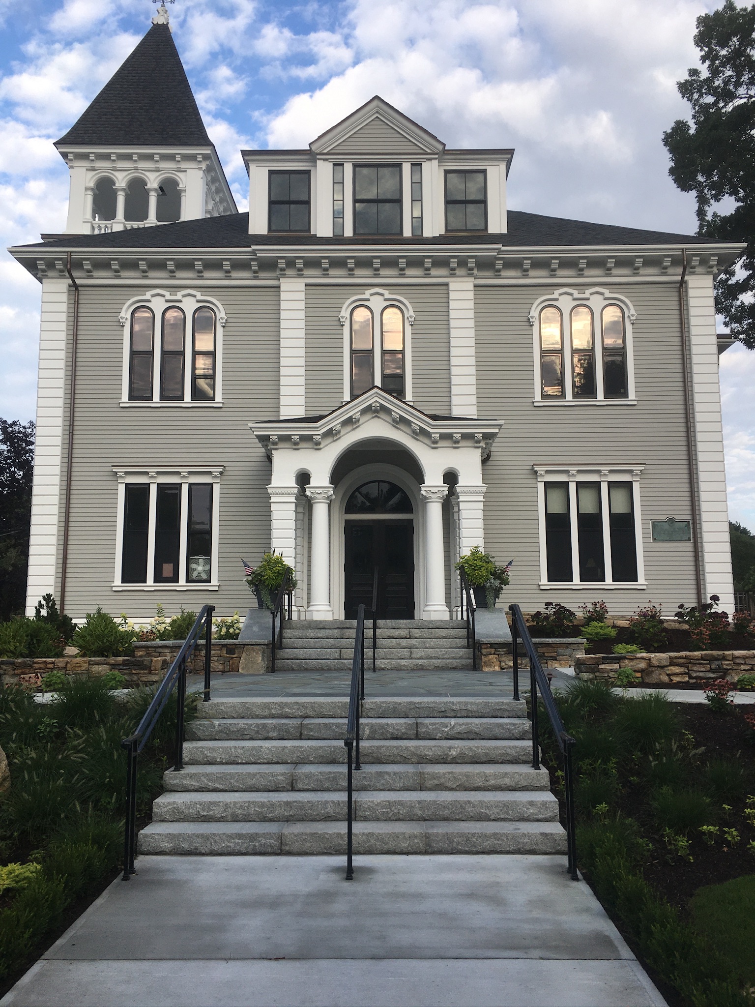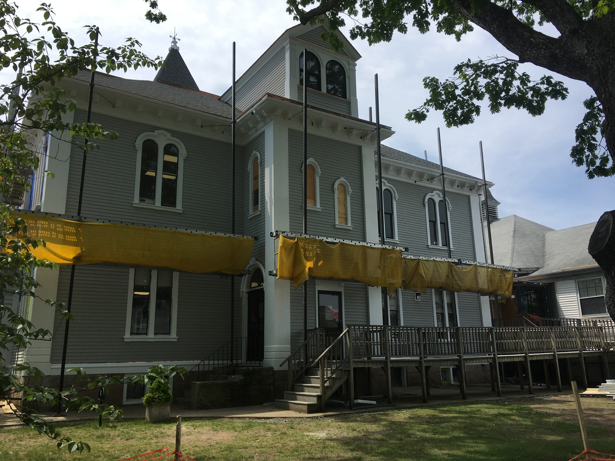 Vareika Construction, Inc. completed exterior improvement and historic preservation work to the Marion Town House in 2022. The Town House, constructed in 1877, originally served as Tabor Academy. Today it serves as the Town Hall and Town Offices. The project involved installing a new roof, historic windows, repairing or replacing fascia, rake boards and trim, and replacing clapboard siding on the oldest section of the building. Other critical pieces of the project included maintaining the historic cupola, as well as moldings and pillars, and construction a new ADA-compliant front entrance.