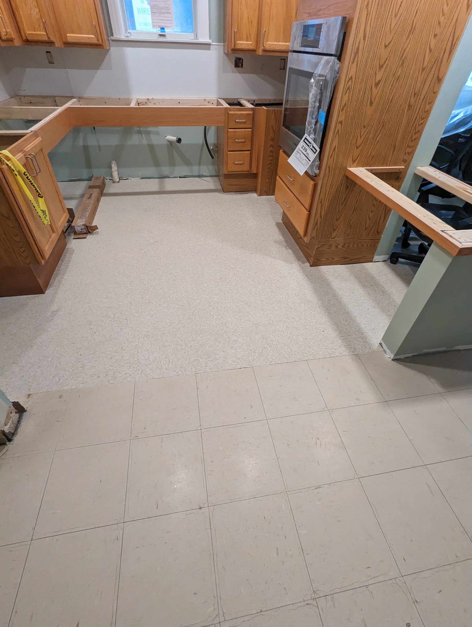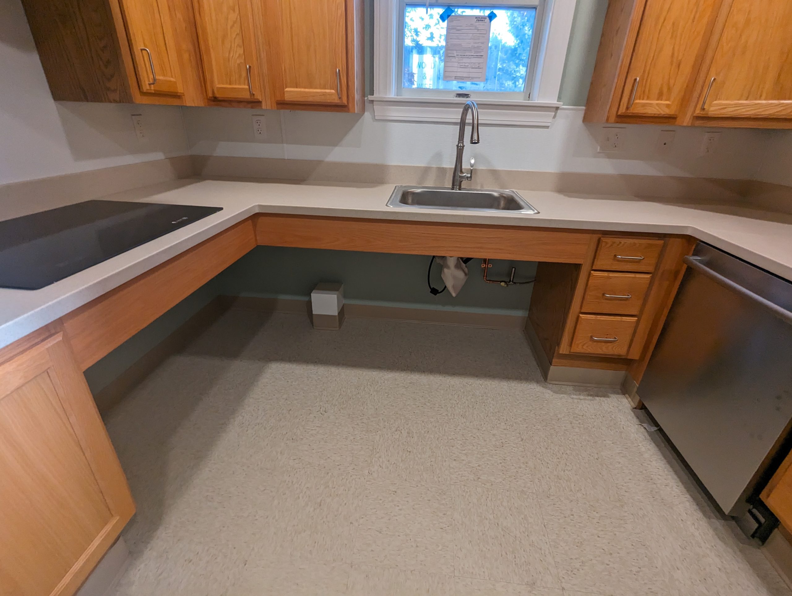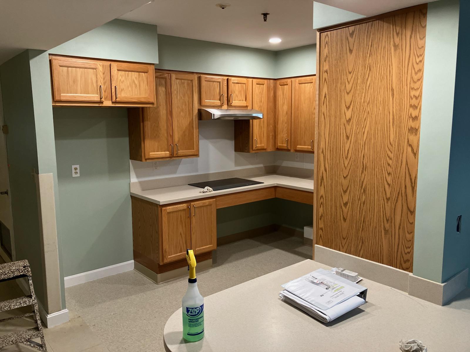 The Stoughton Memorial Drive Kitchens project included the removal of kitchen cabinetry, countertops, and VCT flooring, and the installation of new ADA compliant kitchen cabinets, flooring, solid surface countertops, electrical and lighting fixture upgrades and new appliances.
